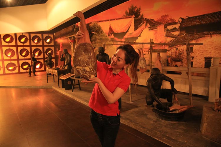 在火腿博覽館取景的過程中,主持人對火腿制作工藝和火腿的造型產(chǎn)生了濃厚的興趣:修胚、上鹽、洗曬、整形、發(fā)酵、聞香等工序不但精細(xì)且充滿了儀式感。陳師傅向她介紹:傳統(tǒng)火腿制作工藝工序多達(dá)36道,金字火腿遵循古法工藝制作,保證金字出產(chǎn)的每一條腿都是“復(fù)古”的“美味腿“。為什么說是美味腿?在金字火腿的中國火腿博覽館內(nèi),欄目組對著一桌的仿真火腿菜肴大呼驚嘆,忍不住都想拿起筷子吃上兩塊。